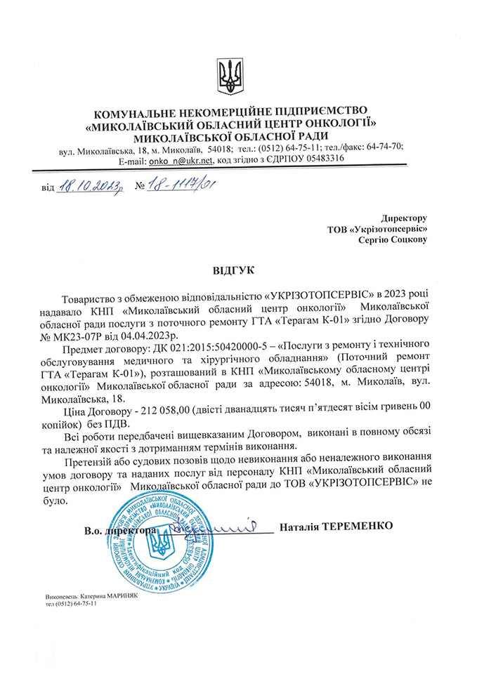 - КНП "Миколаївський обласний центр онкології" Миколаївської обласної ради