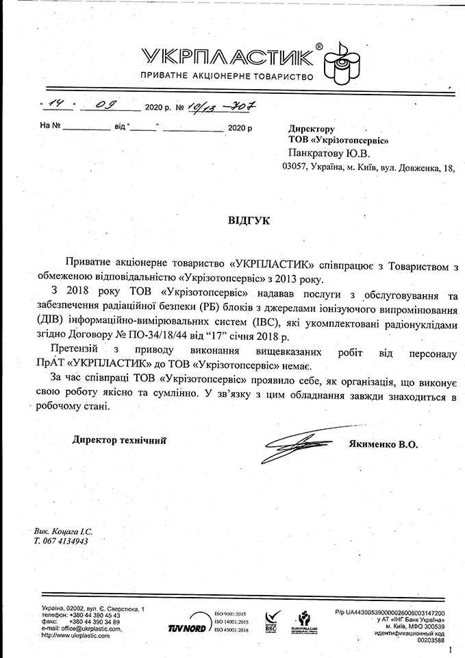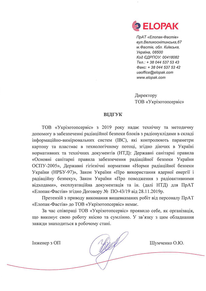 Компанія УКРІЗОТОПСЕРВІС у співпраці з передовими українськими та зарубіжними компаніями готова проконсультувати щодо послуг зберігання, перевезення та утилізації радіоізотопної продукції.