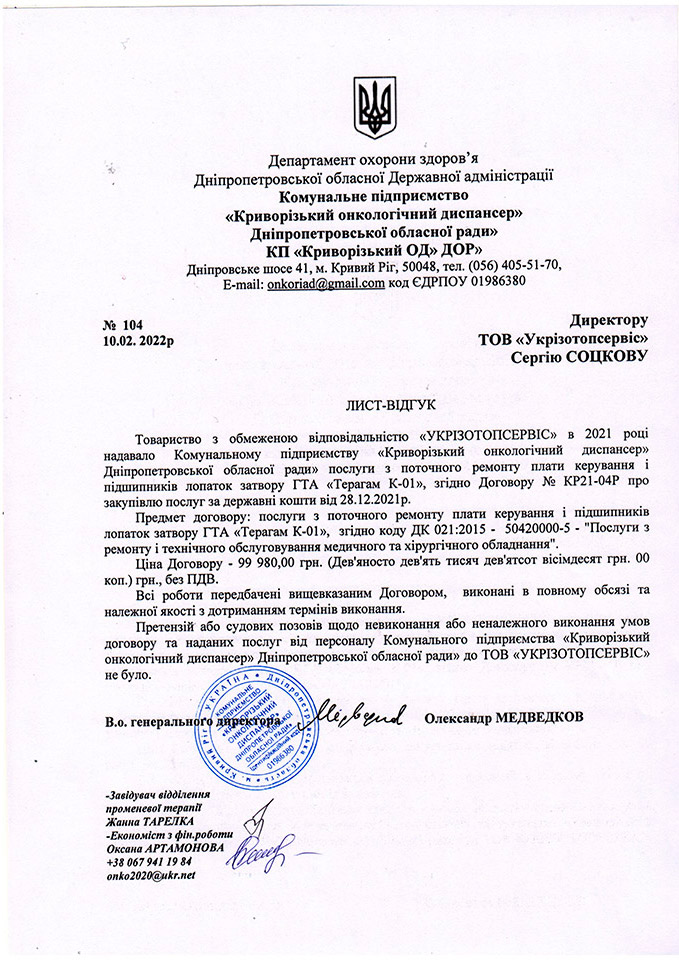 - КНП "Криворізький онкологічний диспансер" Дніпропетровської обласної ради"