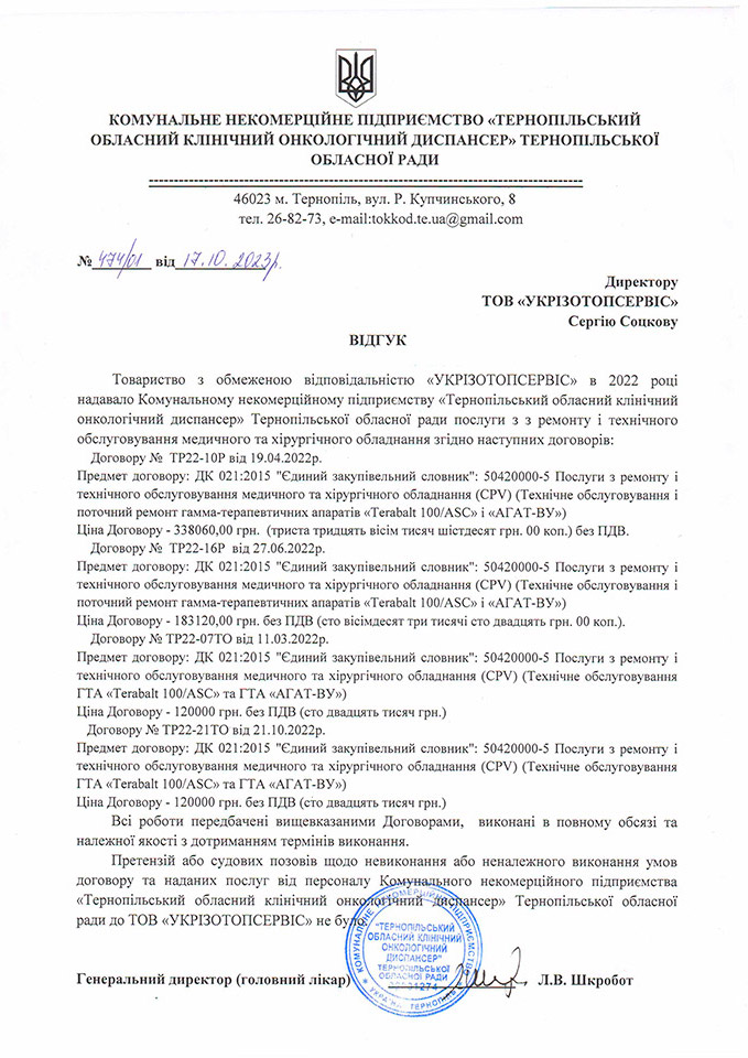 - КНП "Тернопільський обласний клінічний онкологічний диспансер" ТОР